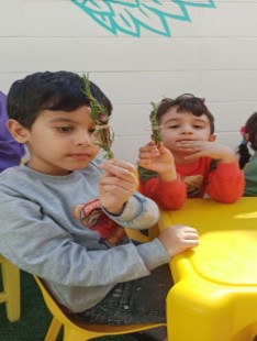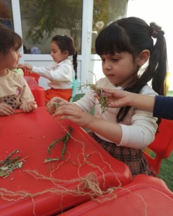 - چیدن انار از درخت انار حیاط مهد با کمک مربی